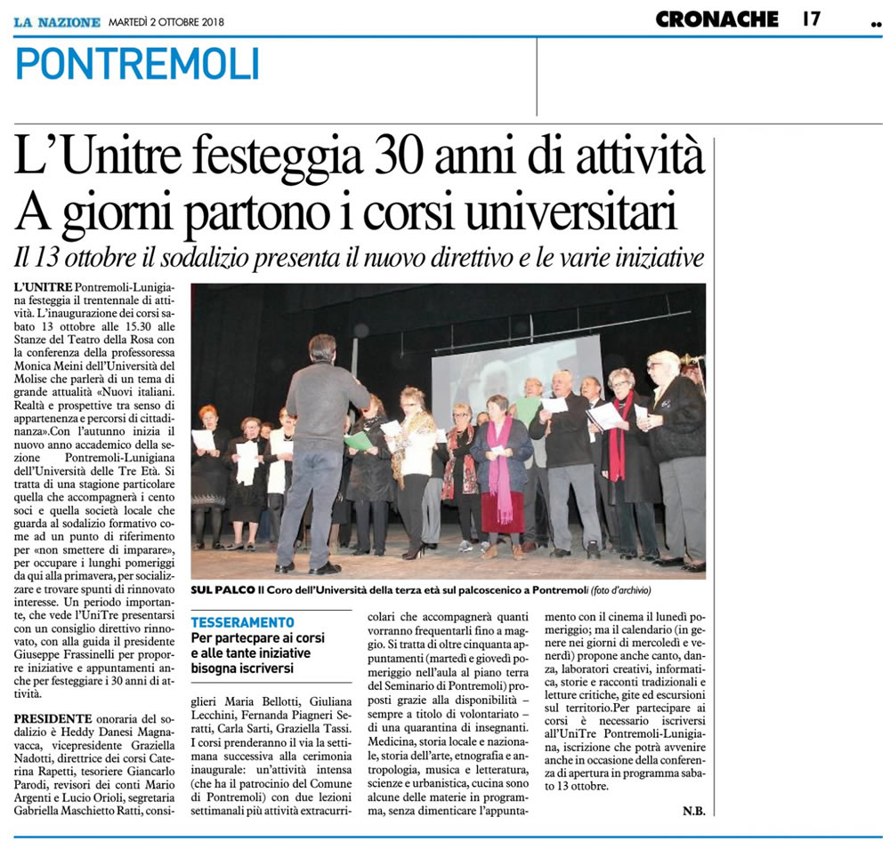 L'Unitre festeggia 30 anni di attività